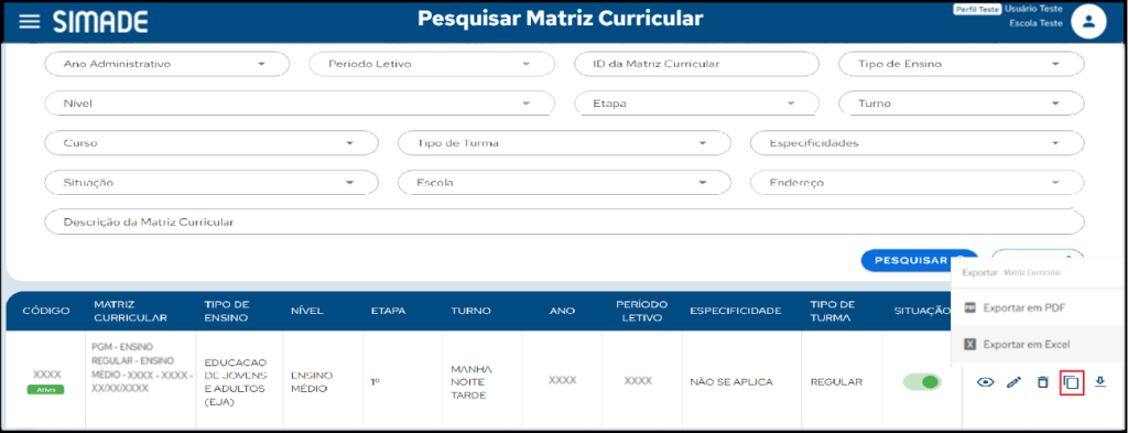 Como Exportar e Incluir Matriz Curricular?